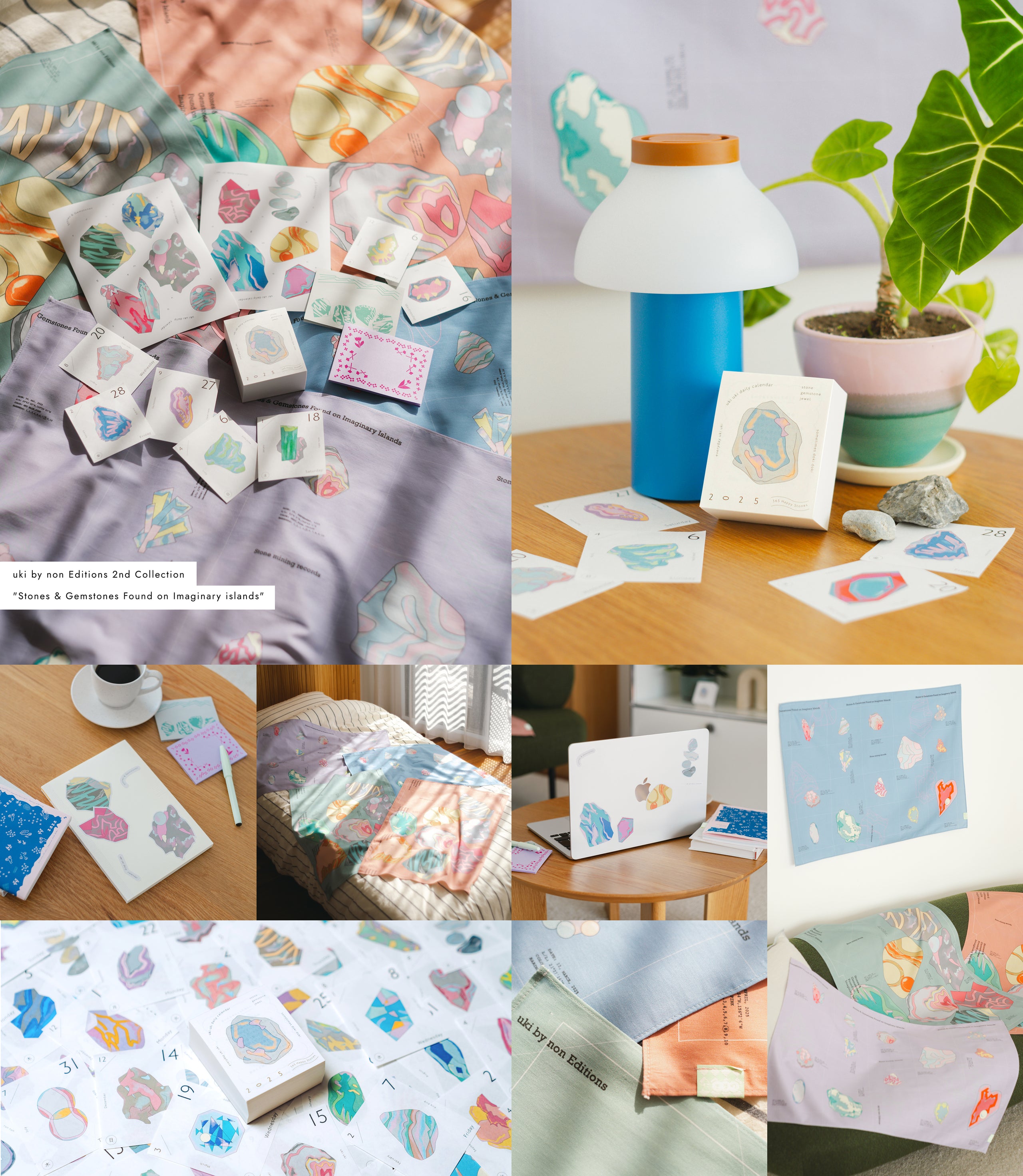 さらに、新作の2025年日めくりカレンダーの他に、マルチに使える大判ハンカチーフやファブリックポスター、ステッカーやポストイットなどのアイテムを展開しました。
